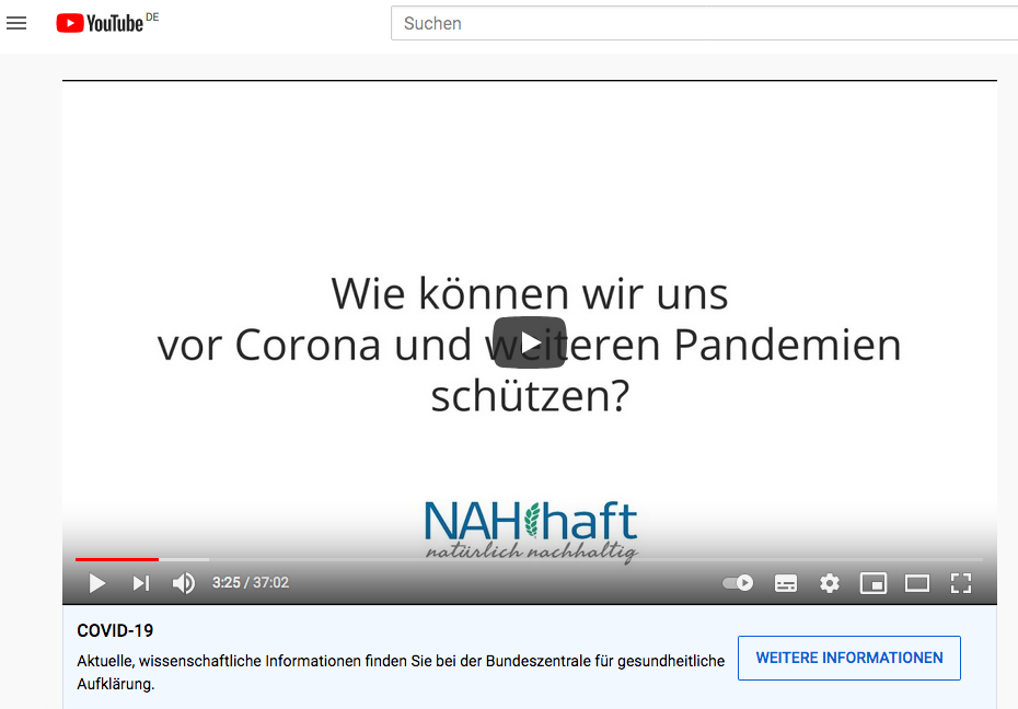 Ziel des Projekts ist auf Basis seriöser wissenschaftlicher Quellen, die Erstellung eines leicht verfügbaren Online-Videos mit dem Themenschwerpunkt Covid-19-Prävention durch gesundheitsfördernde und nachhaltige Ernährung. NAHhaft entwickelt dieses Online-Video und trägt es in Zusammenarbeit mit verschiedenen Akteuren aus Sachsen (Krankenkassen, Verbraucherzentralen und verschiedenen BNE(Bildung für nachhaltige Entwicklung)- und Umweltorganisationen) als Multiplikator/innen und Impulsgeber/innen in die Breite.